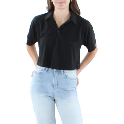 Juniors Womens Cropped Short Sleeve Polo Top In Black