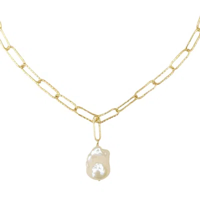 Women's Nova Paperclip Chain Large Pearl Gold Filled Necklace
