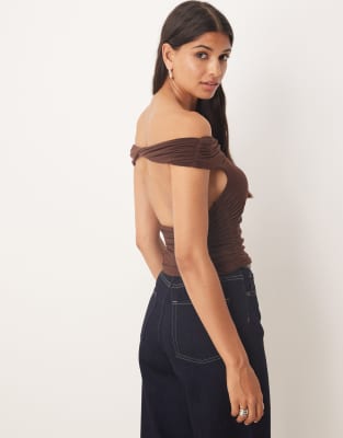 Lila Shimmer Knit Asymmetric Cowl Neck Mini Dress In Brown, Women's At Urban Outfitters
