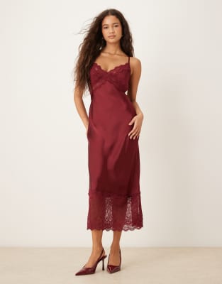 Satin Midaxi Lace Detailed Dress In Red