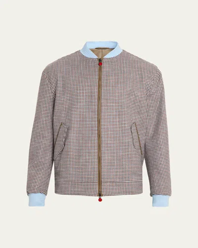 Men's Houndstooth Check Wool And Silk Blouson In Gray