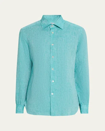 Men's Solid Linen Button-down Shirt In Blue