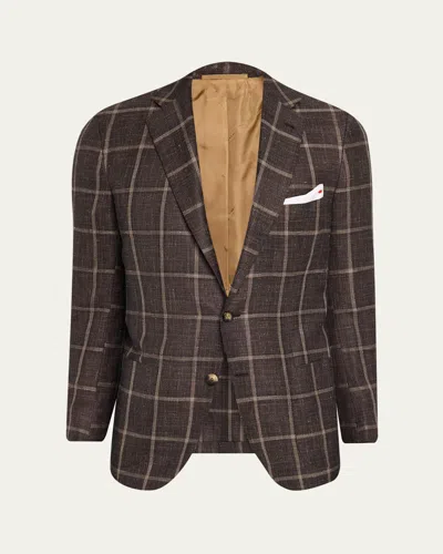 Men's Cashmere, Wool And Silk Windowpane Sport Coat In Brown