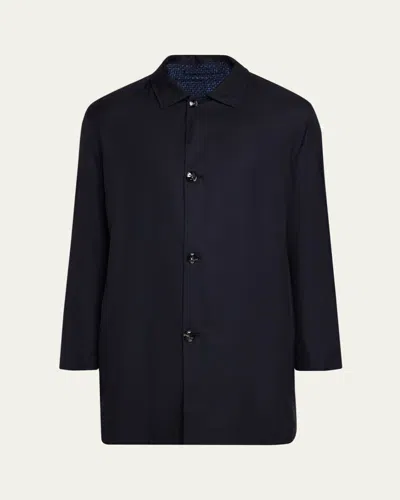 Men's Wool And Silk Birdseye Reversible Raincoat In Black