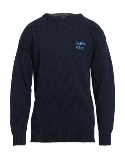 Knt Man Sweater Navy Size L Cotton, Polyamide In Blue
