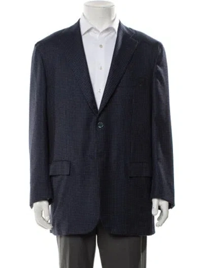 Pre-owned Cashmere Plaid Print Blazer In Blue