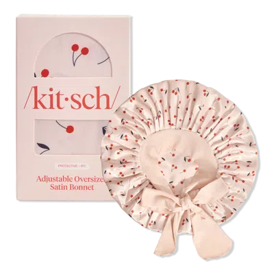 Adjustable Oversized Satin Bonnet - Cherry Print In Red