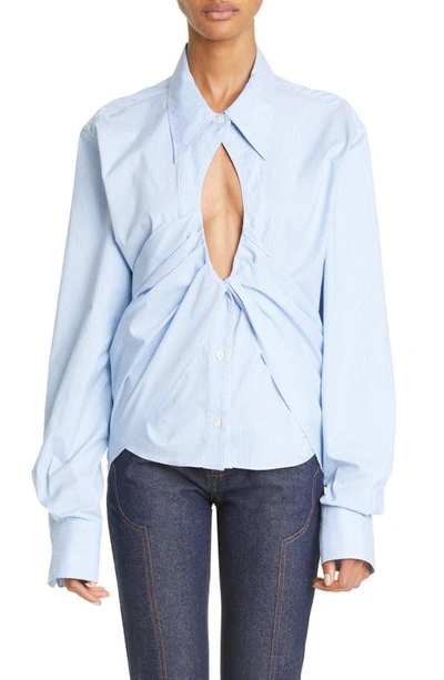 Gender Inclusive The Girl Cutout Button-up Shirt In White/ Blue