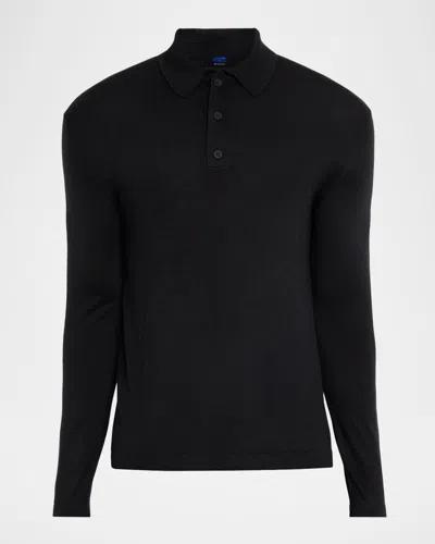 Men's Wool And Silk Long-sleeve Polo Shirt In Black