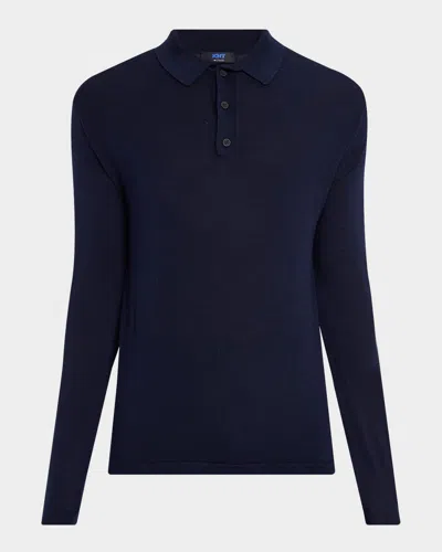 Men's Wool And Silk Long-sleeve Polo Shirt In Blue