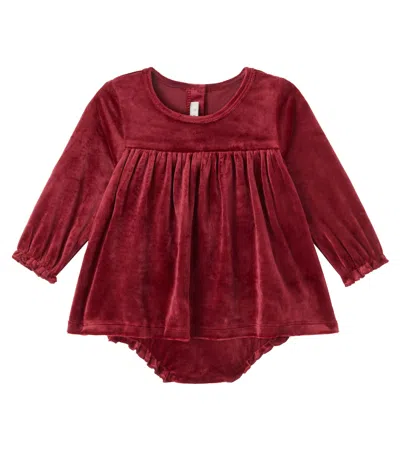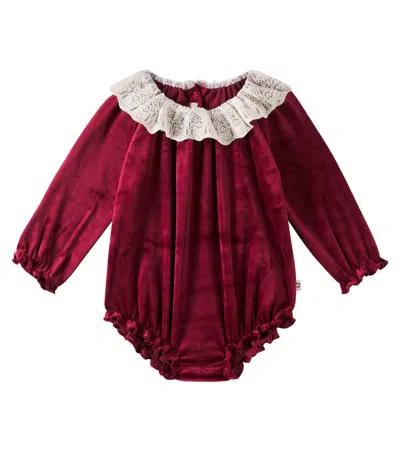 Baby Venola Velvet Bodysuit In Red Dahlia