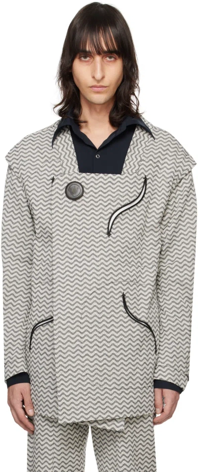 Black & White Double-wave Jacket In Black X White