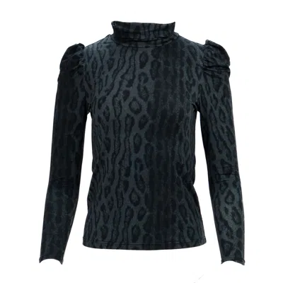 Women's Black / Grey Leopard Jersey Caron Top In Black/grey