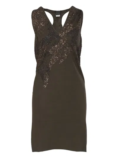 Pre-owned Sequin-embellished Midi Dress In Brown