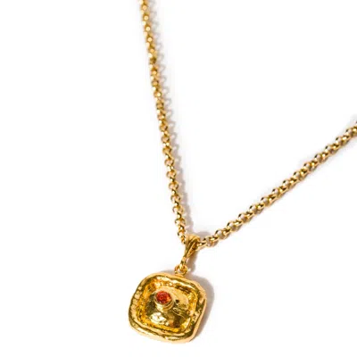 Women's Orange / Gold Square Pendant Gold Necklace In Citrine Glow