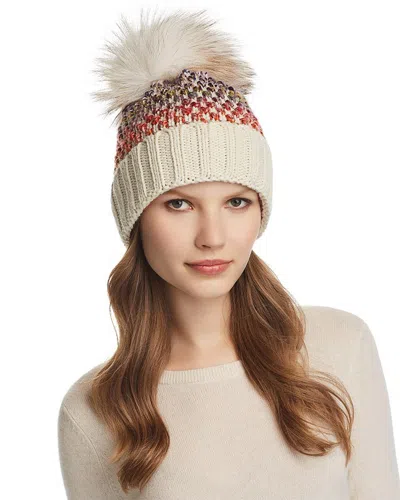 Knit Multi-color Pom-pom Beanie In Ivory
