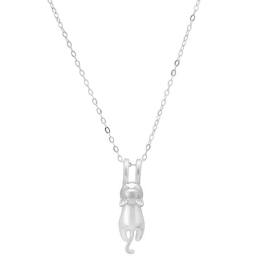 Women's Dangling Kitty Cat Pendant Necklace In Sterling Silver