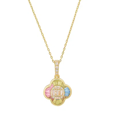 Women's Gold Pastel Multi-color Sapphire Clover Necklace