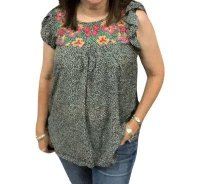 Floral Ruffle Cap Sleep Top In Black