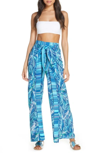 Sketched Leaves Side Slit Cover-up Pants In Pool