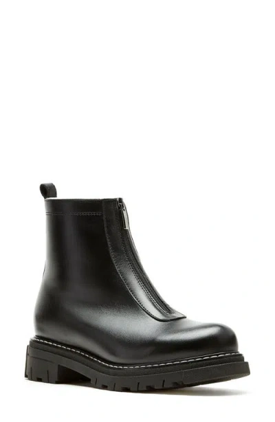 Alec Crinkle Leather Lug-sole Ankle Booties In Black