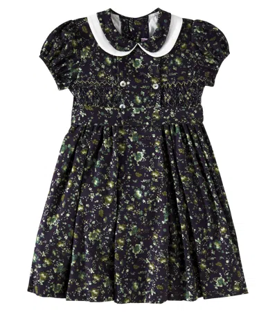 Kids' Arcadia Floral Smocked Cotton Dress In Blue