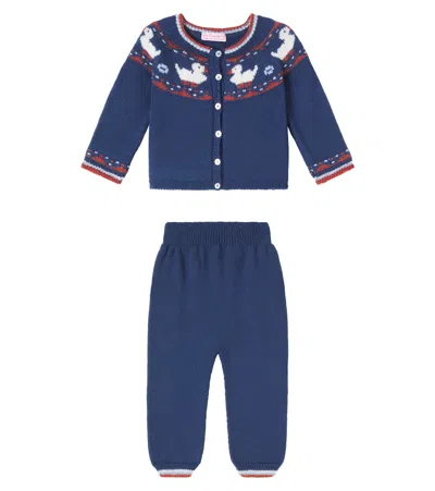 Baby Set Of Wool Cardigan And Pants In Blue