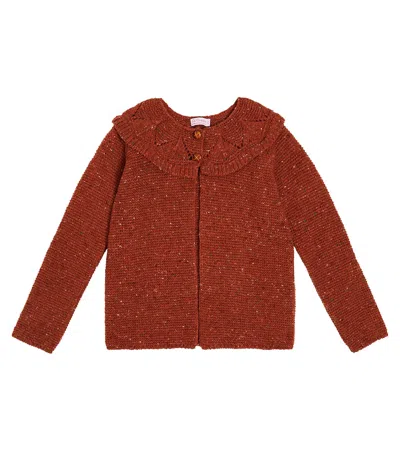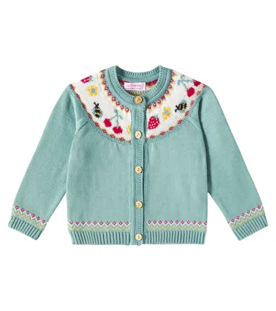 Baby Aubrey Intarsia Cotton Cardigan In Brown