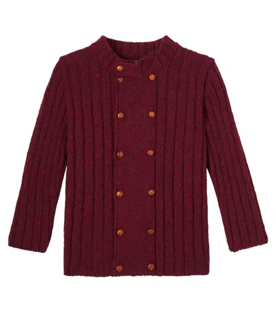 Kids' Bolo Ribbed-knit Wool-blend Sweater In Burgundy