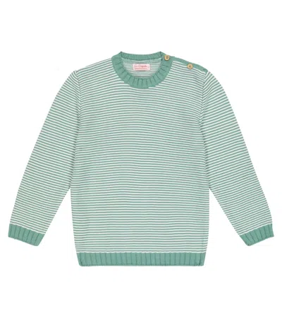 Kids' Bromo Striped Cotton Sweater In Sage Green