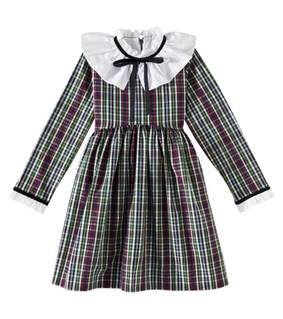 Kids' Diana Lace-trimmed Plaid Cotton Dress In Green