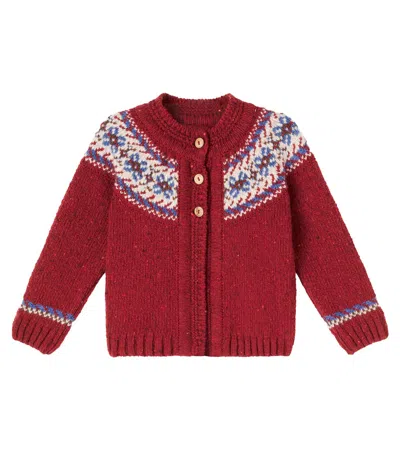 Kids' Nelia Fair Isle Wool Cardigan In Pink