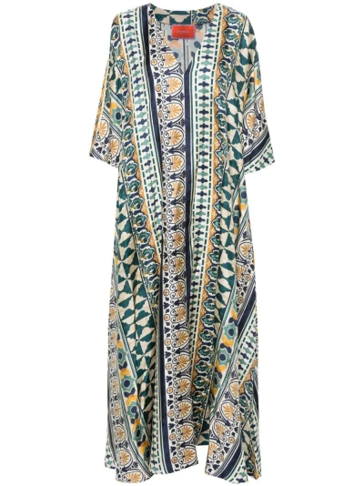 'marlene' Multicolor Long Flared Dress With V Neck And All-over Graphic Print In Chakra Placée Multicolor