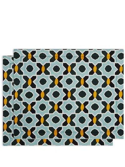 Geometric-print Cotton Placemat (set Of Two) In Blue