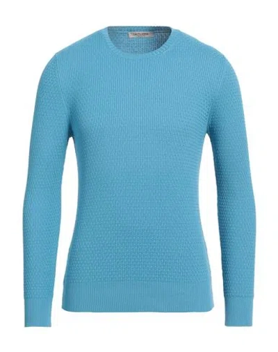 Man Sweater Azure Size 48 Cotton In Blue