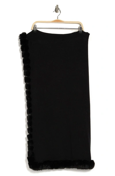 Faux Fur Trim Wrap Scarf In Black