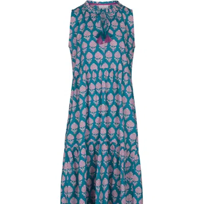 Women's Green / Purple Block Printed Summer Maxi Dress With Pockets Nina In Blue