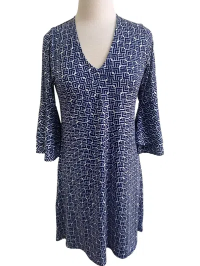 Women's 3/4 Sleeve Crane Dress In Navy/white Sevilla In Multi