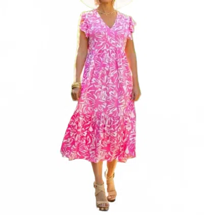 Women's Knit Short Sleeve Brooke Midi Dress In Fuchsia Flower In Pink
