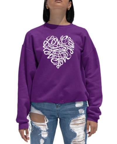 Women's Word Art Crewneck Love Heart Sweatshirt In Purple