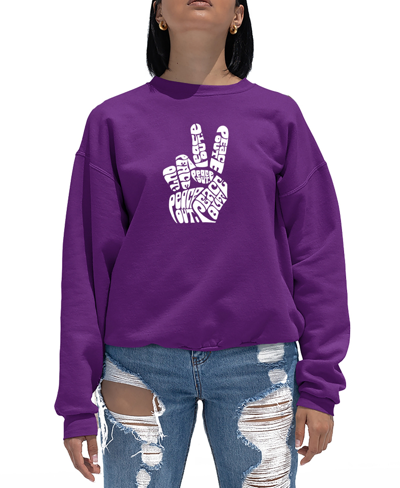 Women's Crewneck Word Art Peace Out Sweatshirt Top In Purple