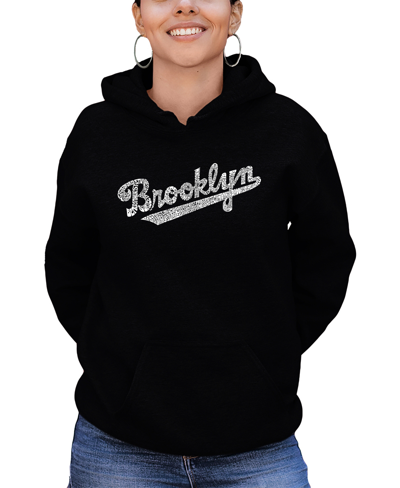 Women's Hooded Word Art Brooklyn Neighborhoods Sweatshirt Top In Black
