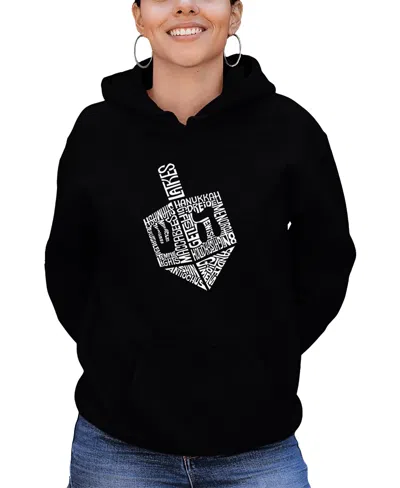 Women's Hanukkah Dreidel Word Art Hooded Sweatshirt In Black
