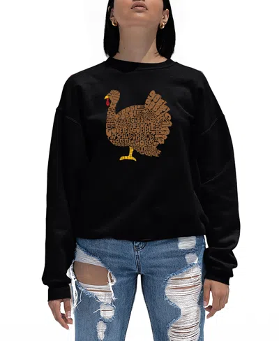 Women's Thanksgiving Word Art Crewneck Sweatshirt In Black