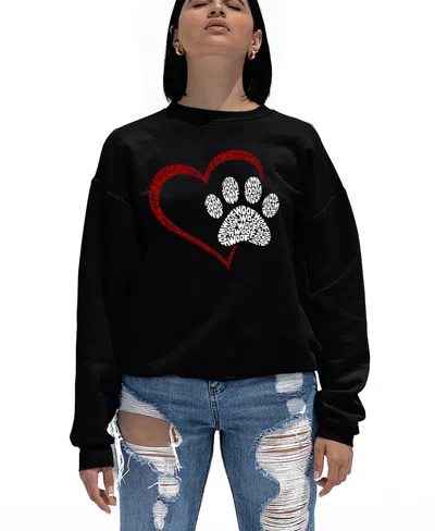 Women's Word Art Paw Heart Crewneck Sweatshirt In Black
