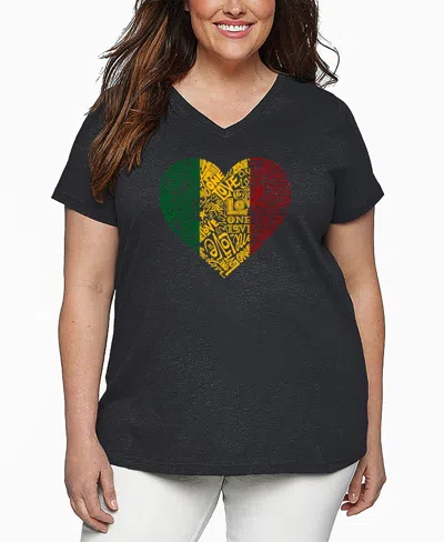Plus Size One Love Heart Word Art V-neck T-shirt In Black