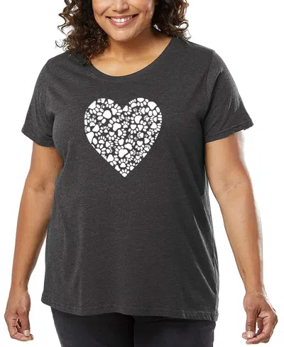 Plus Size Paw Prints Heart Art T-shirt In Gray