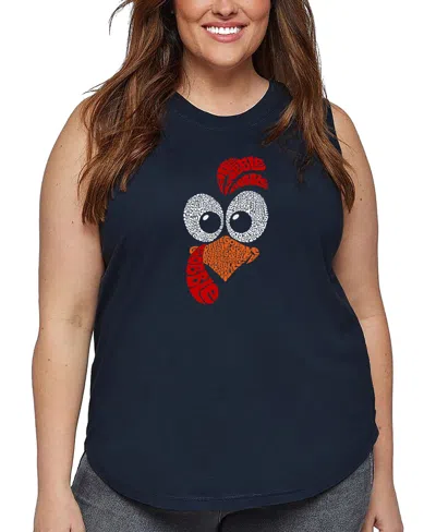 Plus Size Turkey Face Word Art Tank Top In Blue
