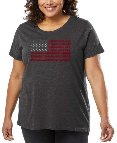Plus Size Usa Flag Word Art T-shirt In Gray
