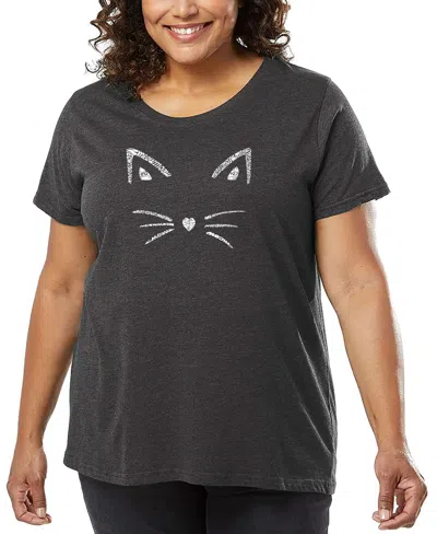 Plus Size Cat Word Art V-neck T-shirt In Gray